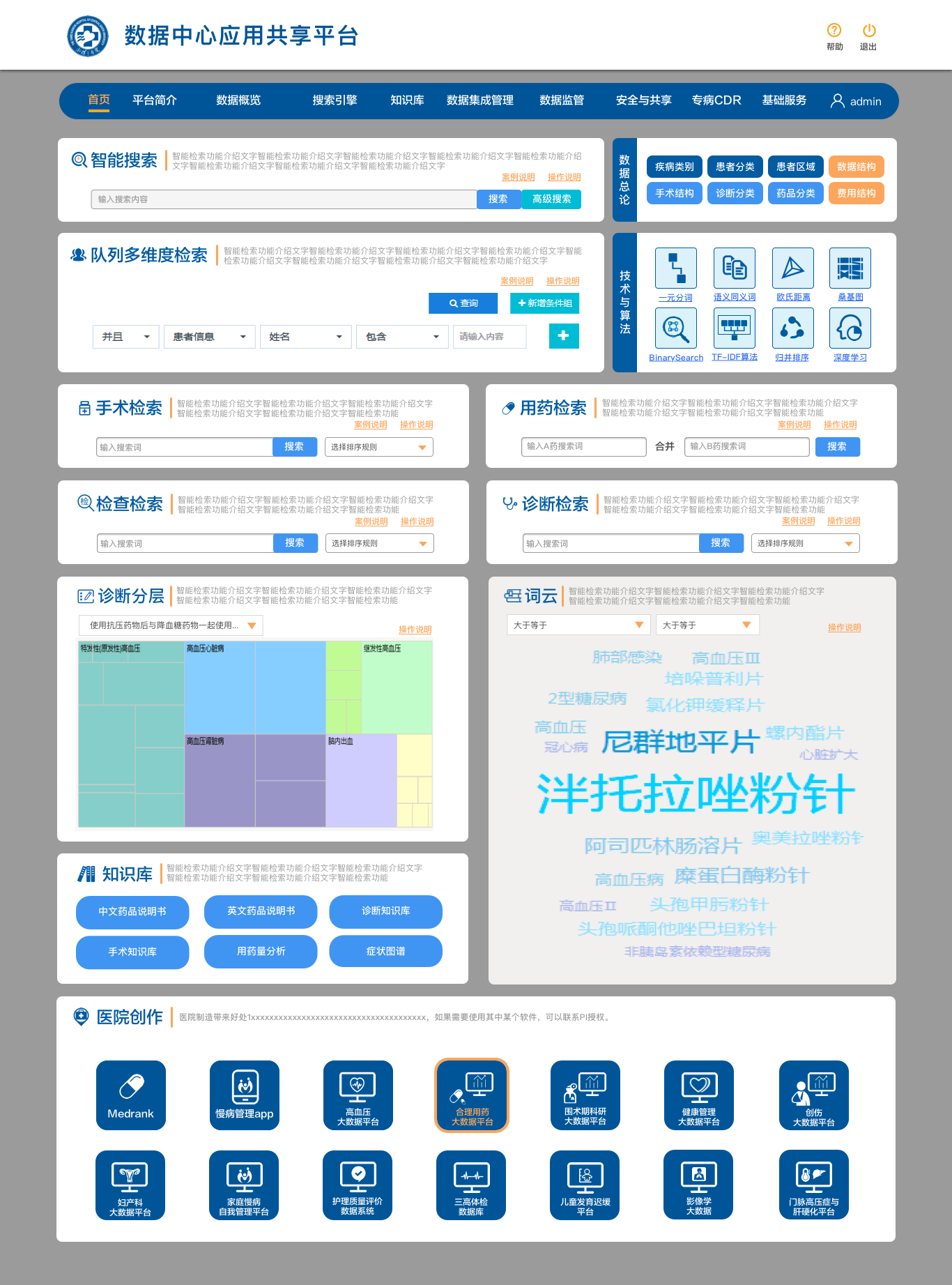 信息时代背景下的医疗信息化发展,数据的实践应用是体现数据价值的重要途径,而在建设过程中存在数据分散多样难共享、非结构化难利用、缺乏规则难管理和缺少分析手段没价值的共性现象。随着医疗数据量的逐步增大,如何有价值的应用是信息化建设的重要研究方向。