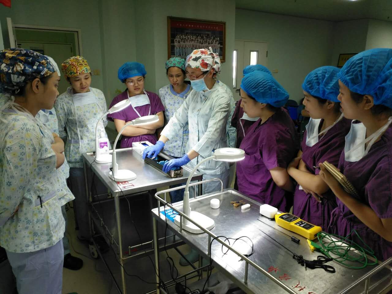 培训会议由手术中心护士长万晶晶主持。培训班课程设置包括低温消毒灭菌系统的操作原理、流程、注意事项、常见仪器设备故障排除及设备维护保养等方面的内容。