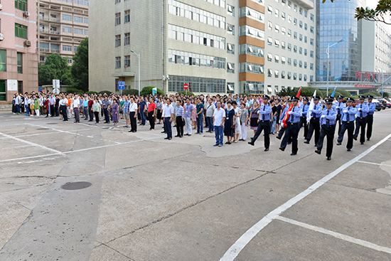在院全体院领导,离退休老领导、老专家、老同志代表,党支部书记,各临床、医技科室负责人,全体副高以上人员、护士长、班组长以上干部,机关全体工作人员以及全体党员、全体学生参加了升旗仪式。