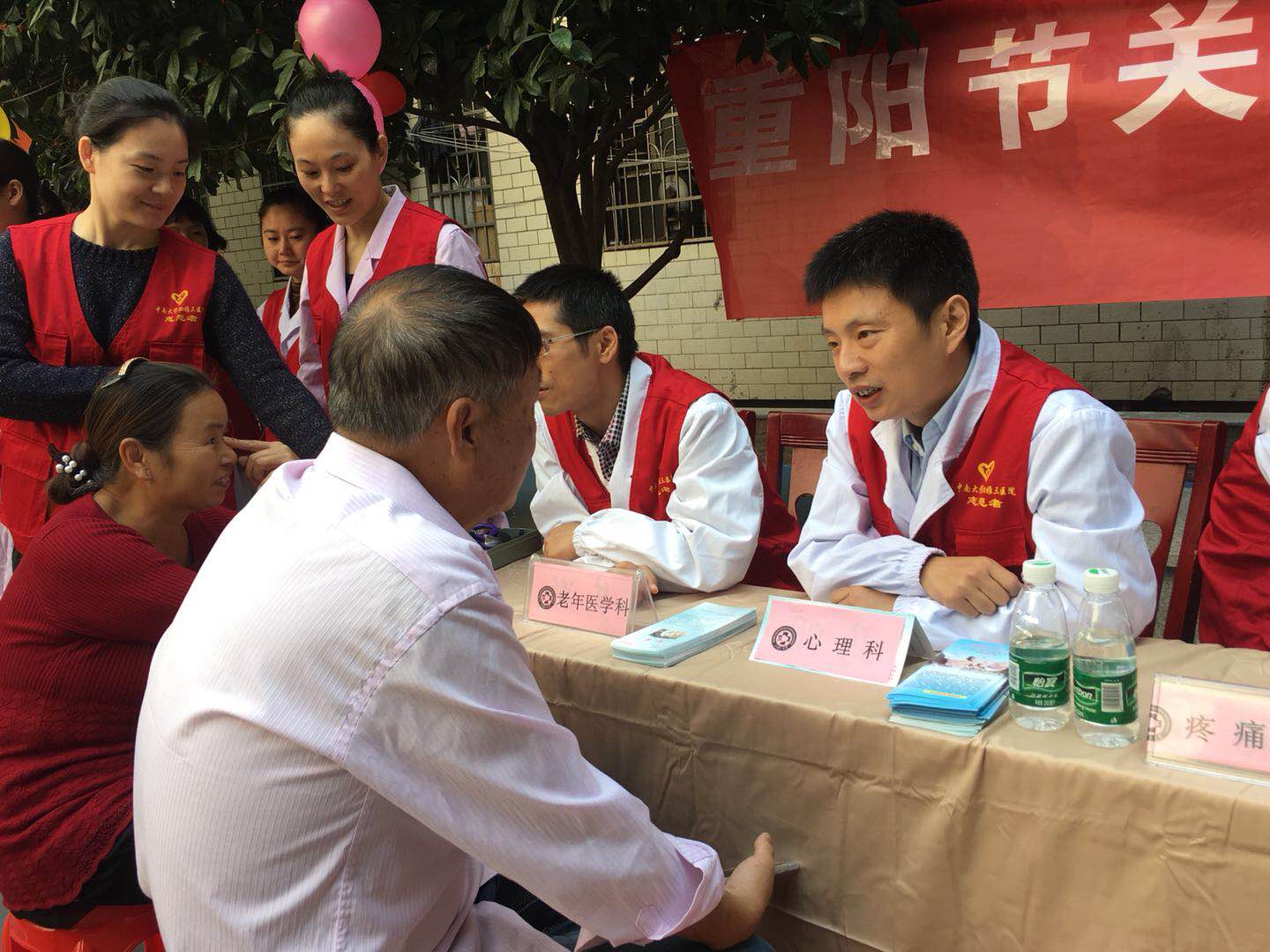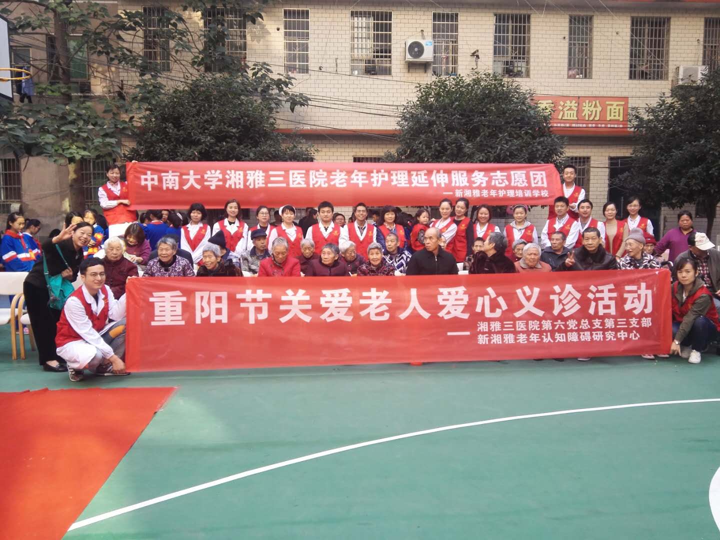 在第三党支部的统一组织下,湘雅三医院老年科认知功能障碍服务团、湘雅三医院老年护理延伸服务志愿团全程参与了此次活动,并开展了老年医学、康复医学、疼痛医学、临床营养、临床心理科的现场义诊,该中心老人在重阳节当天享受到了来自湘雅的优质医疗服务,纷纷表示感谢。