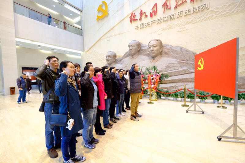 党总支书记、党总支委员、各支部书记、支部委员、党小组长共23人。大家面向党旗,再次庄严宣誓,宣誓仪式朴素而厚重。党员们纷纷表示:在十九大胜利召开之际举行宣誓仪式意义重大,激励着我们不忘初心,牢记使命,高举习近平新时代中国特色社会主义思想伟大旗帜,在新征程上继续前行。宣誓仪式过后,大家集体参观了湖南省党史陈列馆。
