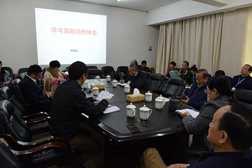朱晒红副院长结合临床、科研和管理工作实际,阐释了“实践是检验真理的唯一标准”等经典论断。他以本人做阑尾炎手术和开展科研课题为例,从书本知识到实践操作,通过理论指导实践,再从实践中得出经验,其个人认识不断提高,方向越来越明晰。他认为工作中容不得虚伪和骄傲,必须保持诚实和谦逊,把一件事认真做到极致。他指出:“人人都是实践者。一灯照岗,千灯照院,亿灯照国。”