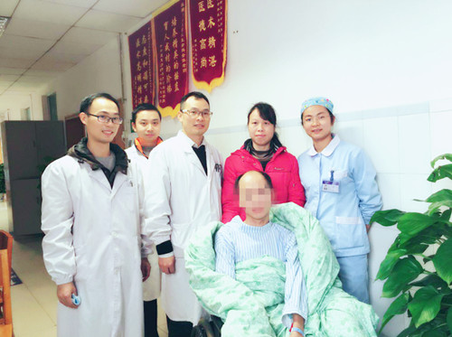 进入EICU后,急危重症中心主任杨明施、急诊科主任张天一,主管医生周柯夫、刘怀政迅速组织大ICU、康复科、胸外科、神经内科会诊,多学科合作制定诊疗计划。患者入科时经气管切开行有创呼吸机辅助呼吸,后气管切开堵管,改无创呼吸机治疗,停无创呼吸机后改中心管道吸氧,并间断使用呼吸训练器。通过序贯治疗,患者顺利脱呼吸机。在治疗基础疾病的同时,入科便开始康复治疗,从最初的咳嗽无力,不能自主翻身,不能独坐,到如今能独坐20分钟。