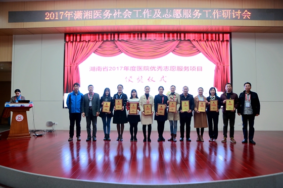 12月8日,2017年中国医院协会医院社会工作暨志愿服务工作委员会第八届工作会议暨潇湘义务社会工作及医院志愿者服务工作研讨会在长沙召开,中南大学湘雅三医院党委副书记、纪委书记吴希林出席会议并担任大会主持。会上进行了 “2017年湖南省医院优秀志愿服务项目”颁奖仪式,中南大学湘雅三医院爱心病房项目作为十个优秀项目之一获得表彰,湘雅三医院团委书记李姗受邀在大会上进行了志愿服务项目经验分享。