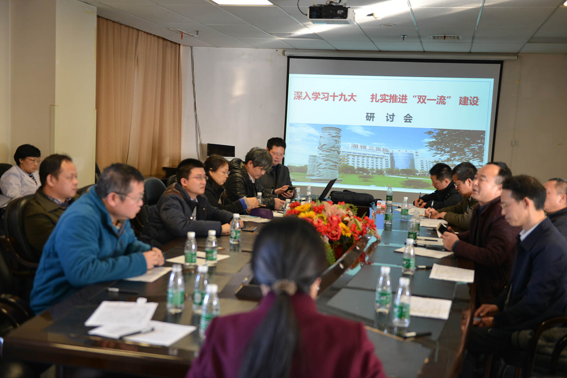 12月19日,科研部负责组织部分学科带头人和青年学术骨干,以及医疗、教学和科研等行政部门负责人,深入学习“十九大”会议精神,扎实推进“双一流”建设研讨会。院领导罗爱静、朱晒红、邓云龙出席。会议由朱晒红副院长主持,他介绍了“十九大”报告中有关“双一流”建设的阐述,强调医院推进“双一流”建设的必要性和紧迫性。
