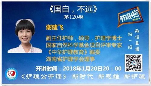 1月20日,湘雅三医院谢建飞副主任护师受邀在全国“护理公开课”平台分享国家自然科学基金申报经验。谢建飞,系移植ICU护士长,副主任护师,硕导,护理学博士,国家自然科学基金项目评审专家,《中华护理教育》编委,湖南省护理学会理事。