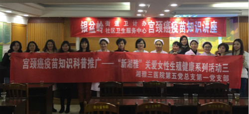 1月23日下午,由中南大学湘雅三医院第五党总支第一党支部妇产科党支部举办的“关爱女性生殖健康”系列公益讲座在长沙市岳麓区银盆岭社区卫生服务中心举行。宫颈癌是妇女最常见的恶性肿瘤之一。在全球范围内,平均每分钟即检查出一例新发病例,每两分钟就有一名女性死于宫颈癌,而这些病例主要集中在发展中国家。近年的研究数据表明,中国的宫颈癌病例占全球的28%以上,每年新发宫颈癌病例为10万,死亡病例3万。因此,预防和救治宫颈癌迫在眉睫。