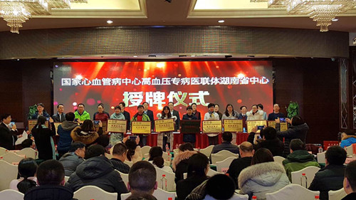 1月27日上午,国家心血管病中心高血压专病医联体湖南省中心授牌启动仪式在长沙举行。同时,湖南省高血压健康教育学校、湖南省高血压研究中心2018年学术年会如期举行,国内高血压防治的知名专家为湖南省各级医疗单位进行高血压防治的系统培训和现场解答。湖南省卫生计生委、湖南省科技厅和中南大学相关领导和专家出席活动。