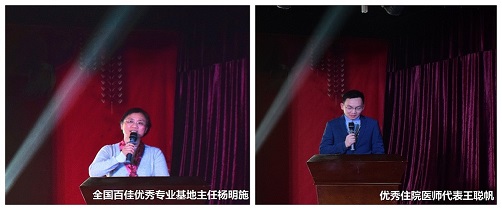 全国百佳优秀专业基地主任、我院急诊科主任杨明施以个人的亲身教学管理经验激励住培带教老师们注重方法、积极带教,重视住院医师的培养。2016级外科社会化住院医师王聪帆作为优秀住院医师代表进行了发言,以自己的培训经历、所感所悟鼓舞住院医师们奋发拼搏。