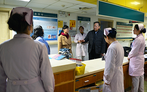 院领导一行分别来到外科病房、内科病房、急诊、后勤等部门慰问。每到一处,都与值班职工亲切握手、交谈,对他们无私奉献、勤奋敬业、患者至上的精神表示赞许。