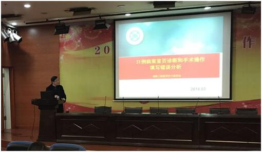 医院评价和质控办主任王炼通过现场调查、理论阐述与案例分析相结合的方式,围绕31例诊断和手术操作填写错误的案例进行详细的原因分析,从主要诊断正确性、诊断完整性、主要(手术)操作正确性、填写项目完整性等多个方面进行了全面细致地讲解,同时针对首页“主要诊断选择原则”进行重点讲述,参会学员纷纷表示培训内容丰富,贴近实际,有助于医生在日常首页填写中保证数据质量、防止错误发生、减少误诊漏诊。
