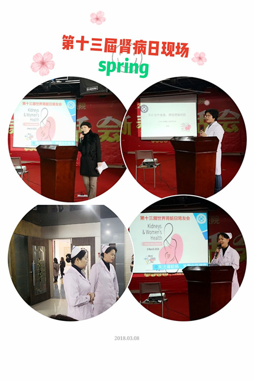 3月8日上午,由肾内风湿免疫专科和肾病护理小组共同承办的第十三届肾脏病日活动,在健康管理中心六楼举行。恰逢三八妇女节,会议的主题定为“关注肾脏病,关注女性健康”,会议内容围绕女性健康展开,呵护女性,关爱女性,降低女性患肾脏病的风险。
