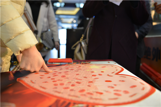 下午两点,在影城大厅青年们在团委事先准备的海报上留下了为祖国点赞的手印并签名留念。在志愿者的指引下现场青年井然有序,有些还在工作人员的录音设备前用声音为祖国点赞,为三院喝彩。