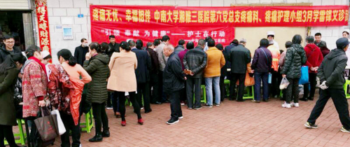 3月21日,为了着力解决长沙市岳麓区周边市民的疼痛烦恼,响应3月学雷锋精神的号召,中南大学湘雅三医院第六党总支疼痛科医护人员联合疼痛护理小组在岳麓区文明社区“咸嘉新村社区”开展了“疼痛无忧, 幸福相伴”的义诊活动。