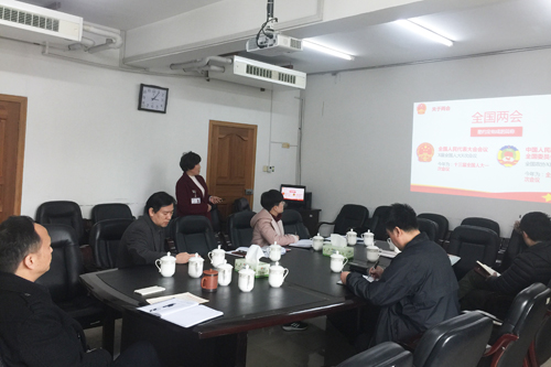 首先医院纪委委员方俏茜组织大家一起学习了中华人民共和国第十三届全国人民代表大会第一次会议和中国人民政治协商会议第十三届全国委员会第一次会议精神,她从两会召开意义、概况、热点、信号以及对今后工作的指导等五个方面图文并茂的带领大家聚焦两会;纪检监察专干周艺津对2018年《中华人民共和国宪法修正案》进行了详细地讲解。