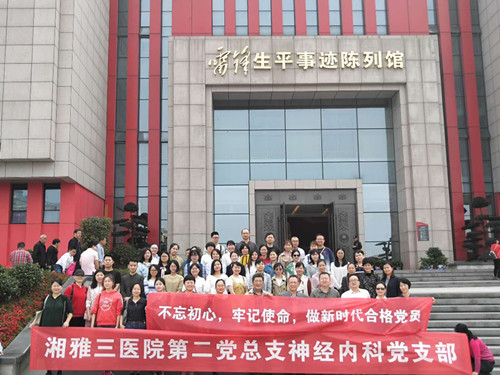 4月1日,中南大学湘雅三院第二党总支神经内科党支部在召集全科所有中共党员与全科工作人员共70余名,到雷锋纪念馆举行学习十九大“不忘初心,牢记使命,做新时代合格党员”主题党日与学雷锋活动。党员们参观了雷锋纪念馆,学习了雷锋同志平凡又伟大的一生。雷锋生前用过的物品,带补丁的衣物、鞋袜,处处让大家感受到雷锋勤俭节约的美德。一篇篇的雷锋日记,记录着雷锋为人民服务的点点滴滴,这些文字映入了参观党员的眼帘,也刻入了他们的心中。来到雷锋同志雕像前,全体党员同志高举右手,集体宣誓,再一次庄严神圣的重温了入党誓词。