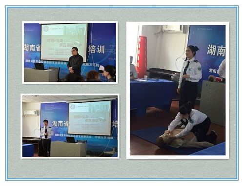 2018年4月28日,湘雅三医院机关党总支、分工会、团支部联合组织机关工作人员在湘雅三医院120急救中心二楼院前急救培训室开展主题为“时间=生命 救在身边”的院前急救知识与技能培训。本次培训由机关党总支书记万响主持,120急救中心刘作良主任率领院前急救团队进行培训,机关工作人员及部分家属40余人参加了此次培训。