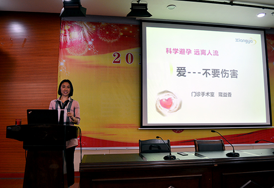 5月4日,湘雅三医院2018年护理专科知识妇科版块培训第一场在外科楼二楼会议室举行。本次培训由门诊手术室护士长,即PAC高级咨询员隆益香进行,授课以目前全世界女性最关注的三大话题之一“计划生育(安全人流”)为主题,进行”爱不要伤害——生殖健康教育”专题讲座。
