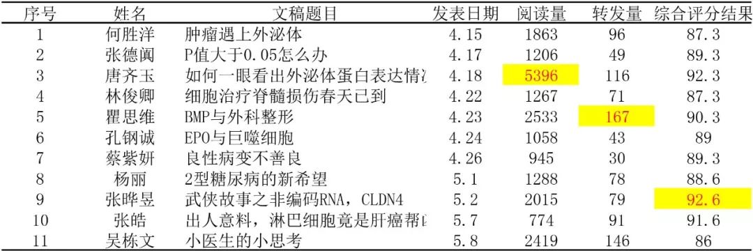 《如何一眼看出外泌体蛋白表达情况》——这篇由选手唐齐玉投稿的作品获得了海量网友读者的青睐,一举拿下了高达5396的阅读量,可见该选手的作品非常吸引读者,最佳人气奖实至名归;而最具影响力奖颁发给了选手瞿思维,她的作品《BMP与外科整形》在微信群和朋友圈被广泛传阅,167次的高转发量说明其影响力之大;最传奇的当属选手张晔昱的作品,将江湖风格的武侠故事与专业文献完美的结合起来的《武侠故事之非编码RNA,CLDN4》,不仅深入浅出地解读了专业文献,而且还增加了文章的可读性和新鲜感,直接吸引到了我们的专家评审们,毫无悬念地拿下最佳文献阅读奖。三位不仅获得荣誉奖励,还获得了1000元的奖励金+2000元的科研大礼包,以鼓励他们更加积极地投身科研。另外,所有作品一经录用,选手将获得200-500元的奖励。