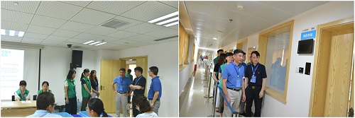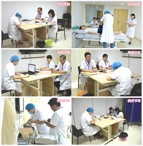 考核期间,湖南省卫计委副主任易露茜、科教处处长范珍贤、考务办主任侯佳在医院党委书记何庆南、院长张国刚、教学副院长吕奔的陪同下实地进行检查督导。易露茜副主任一行详细了解了从候考区至考试区所有环节的衔接和房间的功能特点,对此次结业考核精致的考场布置、科技化的考场设备、顺畅的考核流程以及高标准的考务工作,给予高度的肯定和赞扬。