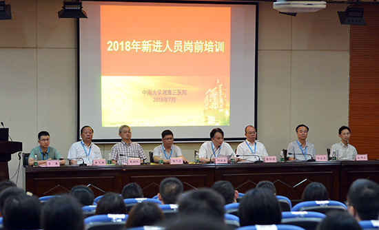 2018年7月16日,湘雅三医院2018新进员工欢迎仪式在外科楼学术报告厅举行。院领导何庆南、杨飞龙、张劲强、邓云龙、黄飞舟、欧阳文、吕奔,全体新进人员以及人力资源部、医务部、护理部等相关部门人员共同参加。朱晒红副院长主持仪式。