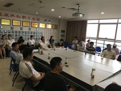 接下来,何乐业书记做了年中总结和科室建设愿景这两个主题的汇报。年中总结把结石组、小儿组、前列腺组、肿瘤组等亚专科在今年上半年的医教研方面的成绩以折线图的形式做了详细的总结,使每组老师更清晰的了解自己的业绩与短板,为下半年的工作指明了方向。科室建设则从标准制度、文化内涵、人才培养等方面做了强调和阐述,使我们对泌尿外科这个大集体有了更多清醒认识及责任与担当。