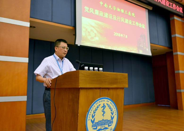 7月24日下午,中南大学湘雅三医院2018年党风廉政建设及行风建设工作会议在湘雅医学院四楼会议室召开。医院党委书记何庆南、院长张国刚、党委副书记纪委书记张劲强、副院长欧阳文出席会议并发表重要讲话和主题讲座,会议由党委副书记杨飞龙主持。