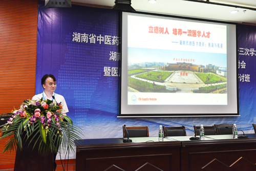 开班仪式上,张国刚院长致辞,他总结了湘雅三医院本科教学工作取得的成绩,也指出了不足。对学校的指导支持、全体教学工作者的奉献表示感谢。同时,他还对参训学员提出四点期望:一是要立德树人,这是教育的根本任务;二是要树立正确的世界观、人生观、价值观,坚持正确的政治方向,落实社会主义核心价值观,弘扬正能量;三是要对接双一流建设,强调一流的本科教育是双一流建设的根基;四是要回归本色,充分发挥教书育人的作用,共同培养一流的医学人才。