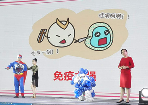 决赛中,赵群团队将内容设定在目前社会热门话题——HPV疫苗,结合小舞台剧及场景剧精彩演绎,让大众在幽默诙谐的气氛中深刻了解“如何远离女性最常见的生殖道肿瘤——宫颈癌”。大气的台风、精彩的讲解加上别出心裁的现场表演、寓教于乐的健康科普形式,受到了全场专家评委与观众的一致好评。