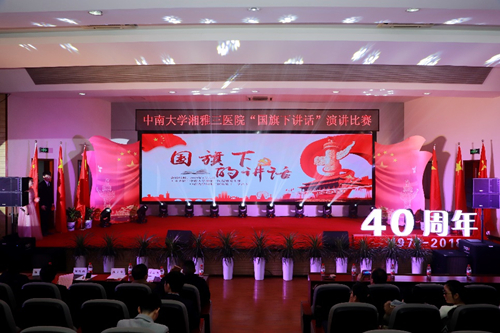 2019年1月25日晚7点,由中南大学湘雅三医院研究生部及第十一党总支联合举办的“国旗下讲话”演讲比赛总决赛在湘雅医学院新校区图书馆报告厅隆重举行,湘雅医学院党委书记陈立章、湘雅三医院党委书记何庆南、中南大学党委学生工作部副部长张江华、湘雅三医院党委副书记杨飞龙、湘雅三医院党委委员、副院长吕奔及湘雅三医院研究生部相关人员等观看了比赛并为获奖选手颁奖;此次演讲比赛决赛由湘雅三医院10个不同科室的研究生参与,为我们展示了改革先锋的先进精神,声情并茂、感情真挚,为湘雅三医院全体研究生奉献了感人肺腑的精彩演讲。