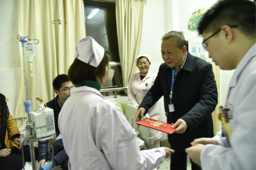 大年三十、正月初一,院领导何庆南、张国刚、杨飞龙、张劲强、邓云龙、黄飞舟、欧阳文、吕奔率各职能部门负责人,先后走访各条战线,亲切慰问一线在岗职工,探望住院病友,向他们送上新春的祝福。