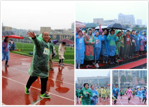 16:30,“约跑三八”迷你马拉松赛在湘雅医学院的操场举行,党委副书记、纪委书记张劲强作发言并领跑,520多名运动员冒雨参赛。