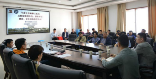 为加强廉政建设、提升后勤服务品质,防范安全事故发生,2019年5月10日上午,中南大学湘雅三医院“外包服务单位工作纪律、廉政建设”工作集体谈话会在动力中心会议室召开。会议由第十党总支第二党支部、后勤保障部、纪委监察办共同组织召开,后勤保障部所辖外包服务单位的负责人共23名参加会议。