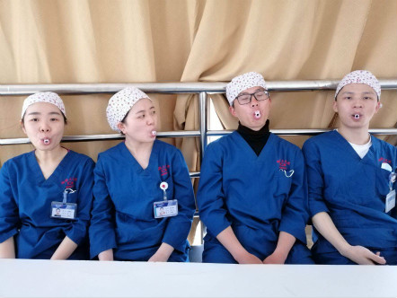 3月23日,新护士们体验了气管插管患者的感受。虽然只有短短的二十分钟,但是第一次体验嘴里含口塞不能说话、口水直流的新护士感受颇深。有人说:太难受了,以后要好好的护理病人。有人说:下巴好酸,很想把口塞吐出来。相信通过这样的感同身受,他们在工作中会更能理解患者,关心患者,更好地做好患者的口腔护理,并加强与气管插管患者的沟通。