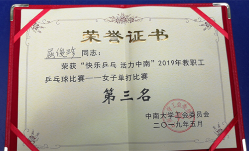 2019年中南大学教职工乒乓球比赛,于5月26日在校本部教工活动中心乒乓球馆落下帷幕,比赛为期6天。本次比赛设男子单打、女子单打、男女混合双打及混合团体共4个项目。湘雅三医院乒乓球队队员参加了所有项目的比赛。