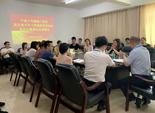 院团委程海威传达了中国共产党中南大学湘雅三医院第四次代表大会主要精神,并以《不忘初心 紧跟党走 以青春之我建设青春三院》为题带领大家学思践悟党代会报告要旨,提出工作规划,部署落实举措。