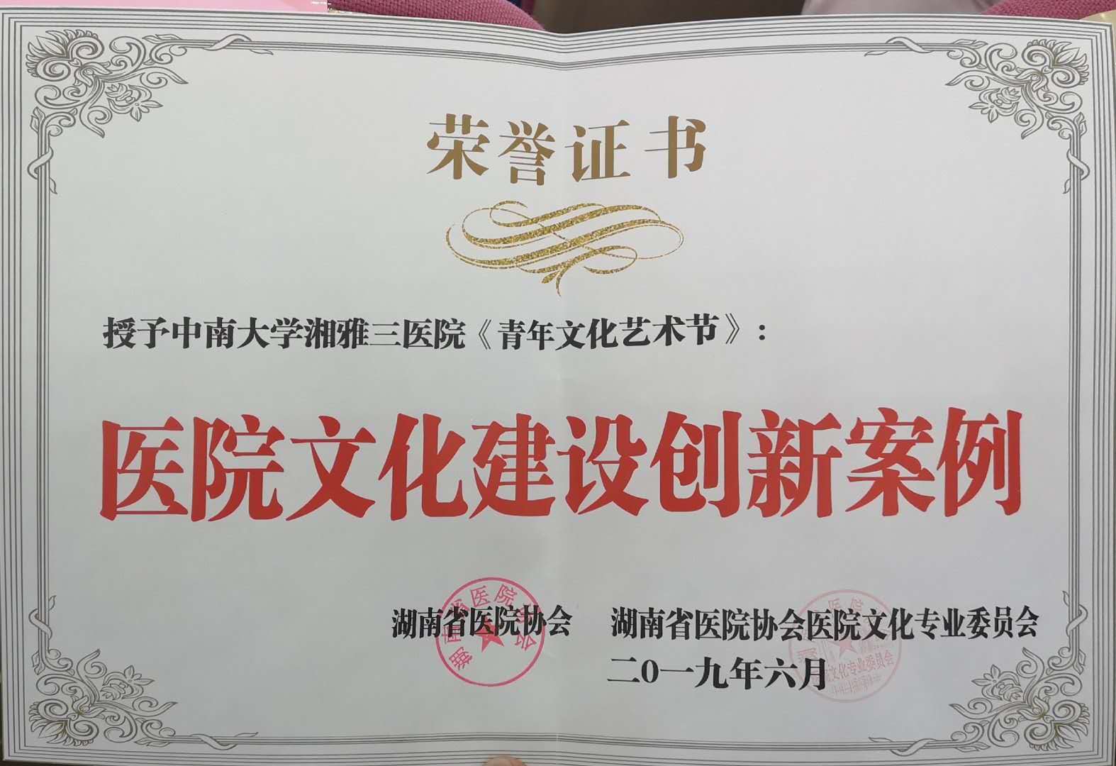 5月31日-6月1日,湖南省医院协会医院文化专业委员会换届选举暨2019年“湘医情 文化风”学术年会在长沙召开。会议投票选举产生了新一届医院文化专业委员会,并表彰了一批医院文化建设先进集体和个人。中南大学湘雅三医院荣获湖南省医院文化建设先进单位,青年文化艺术节、原创MV《守护生命的远航》荣获湖南省医院文化建设创新案例。党委副书记杨飞龙当选为湖南省医院协会医院文化专业委员会副主任委员,党委办公室主任许泽华、党委宣传部主任李姗当选为委员。