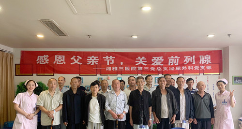6月15日下午,为迎接党的生日,同时为庆祝一年一度的父亲节,中南大学湘雅三医院泌尿外科28病区医务人员携湖南中医药大学护理实习生,在外科楼十五楼示教室为前列腺增生的病友们举办“感恩父亲节,关爱前列腺”的主题病友会。