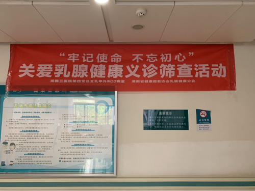 6月15日上午,为了更好地了解研究生、博士生的压力源,帮助疏导和排解他们在学习和生活中面临的各种压力,湘雅三医院乳甲外科33病室在中南大学护理学院开展了主题为“牢记使命,不忘初心——关爱女性,关注乳腺健康”的义诊筛查活动。活动由王玲护士长带队,丁波泥副教授、杜鹃主治医生等10人参加。