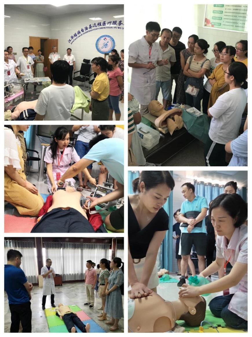 中国心肺复苏基层培训班是专门针对基层医疗机构的医务人员开设的心肺复苏培训课程,课程按照《2016 中国心肺复苏专家共识》,参照《2015 国际心肺复苏指南》,遵照区域开展心肺复苏差异化状况的“三照”标准,制定了规范培训教材、审定培训导师、核定基础培训对象的“三定”方案,籍以提升广大基层急救工作者的心肺复苏理论知识与业务水准,提高民众心脏呼吸骤停抢救成功率与生存率。江华基层培训班是中国心肺复苏基层培训的第一站。