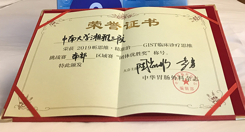 8月24日,《中华胃肠外科杂志》联合同济医学院主办的“胃肠间质瘤(GIST)临床诊疗思维挑战赛-南部赛区决赛”在湖北宜昌落下帷幕。经过紧张激烈的现场演讲和专家评审,张翼教授带队的消化道肿瘤MDT团队脱颖而出,荣获大赛第一名,并将代表南部赛区参加今年9月份在广州举行的全国总决赛。