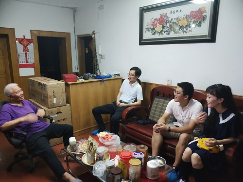 近日,为响应“老少共建”活动的号召,学生党总支第十一支部第一支部数名学生代表在研究生部副主任李夏雨的带领下,前往老领导杨伯勋的家中进行了亲切的探望和交谈。老领导深情地给学生代表讲党史,述党恩,加强了爱国主义教育,有爱和谐;同时就“党的光辉历史进程”、“为什么要入党”及“怎样看待当前医患关系”等问题与学生们进行了深入交流讨论。学生代表均表示在与老党员的日常家话中受益匪浅,要学习老一辈艰苦奋斗、朴素朴实的精神,牢记作为一名党员和医生的初心使命。