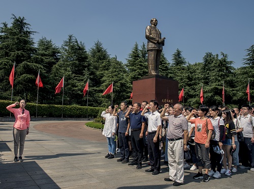 抵达韶山后,支部全体党员前往毛泽东铜像广场瞻仰伟人,敬献花篮,庄严鞠躬,表达对伟人的敬仰与缅怀之情。医院党委委员、副院长欧阳文同志在伟人雕像下给党员同志们上了一堂别开生面的党课,教导党员同志不忘革命传统,坚定理想信念,做有责任感和使命感的共产党人。随后还请来老党员王明安同志为支部同志们讲述革命历史,支部书记乐园同志带领大家重温入党誓词,感受身为共产党员的荣誉和使命。
