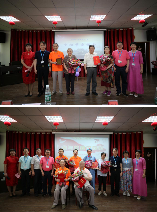 会上表彰了钻石婚伉俪杨培明夫妇和金婚伉俪朱大鑫夫妇。大家还为卢捷湘、罗成群、董克礼、文德华、左定岚等老同志庆祝70寿诞。