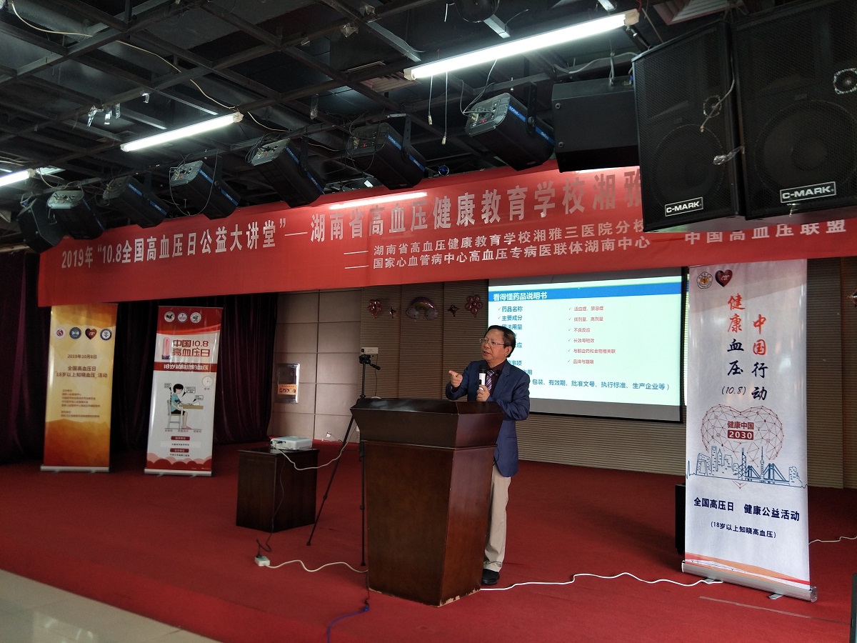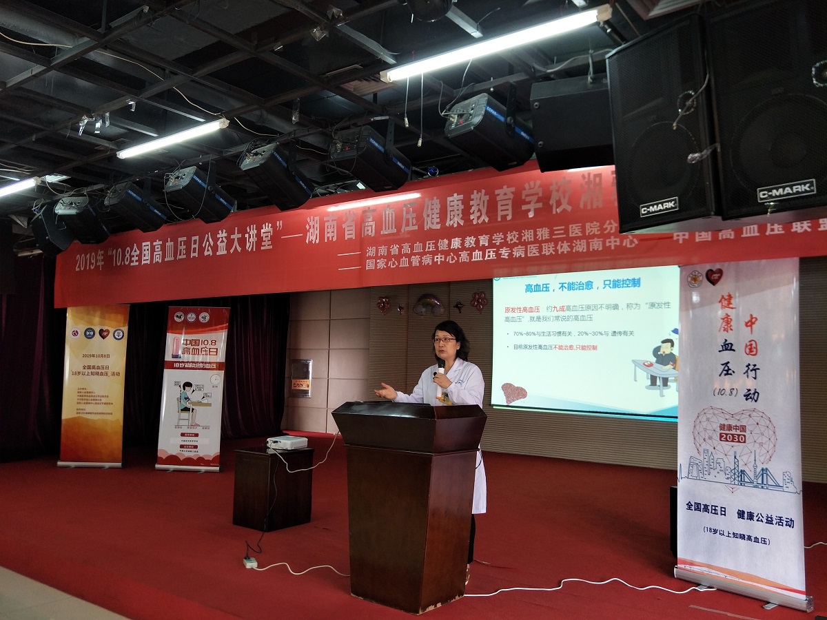 10月8日是全国第22个“高血压日”,在中国高血压联盟、中国高血压达标中心、医促会高血压分会的积极倡议下,湖南省高血压健康教育学校在中南大学湘雅三医院健康管理中心6楼举办了高血压病公益大讲堂活动。湘雅名医、湖南省高血压健康教育学校校长袁洪教授,中南大学湘雅三医院心内科主任、湖南省高血压健康教育学校副校长蒋卫红教授以及心内科医护人员、部分高血压患者以及社会群众近100人参与了现场活动,湖南省高血压健康教育学校副校长丁四清担任主持。本次活动通过网络平台线上直播,近1万人进行线上全程关注。