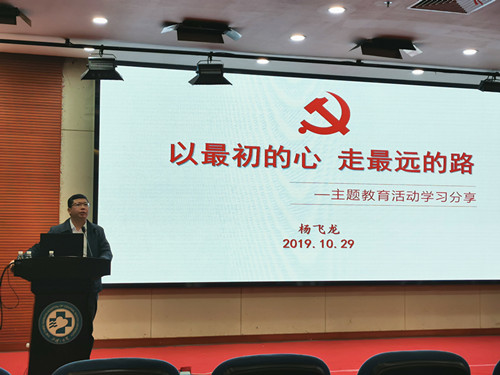 10月29日,湘雅三医院第三党总支召开“不忘初心,牢记使命”系列主题教育活动,医院党委副书记杨飞龙给全体党员上了一堂名为“以最初的心,走最远的路”主题党课,进一步提高思想认识和政治站位。