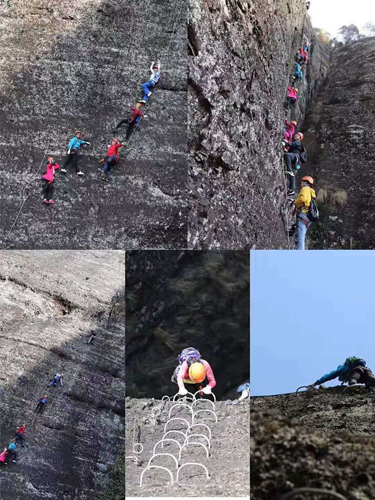 上午10点,攀岩正式开始,经过近2小时的攀岩,团队到达500米处,短暂休整后开始进入下一阶段的攀岩。在攀岩的后半部分,地形更为险峻,是对体力及毅力的双重考验。队员们相互鼓励,相互帮助。下午4点,经过6个小时的努力,队员们成功到达终点,完成了全长1280米的攀岩挑战。