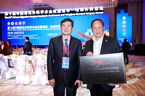 11月2至3日,为提升全国门静脉高压症的诊疗技术,规范诊治流程,推进门静脉高压症个体化诊疗进程,由中华医学会、中国研究型医院学会、清华大学和哈佛大学共同举办的“第十届中国消化外科学术会议暨清华-哈佛外科论坛”在北京成功召开。其中亚太门静脉高压论坛暨亚太门静脉高压联盟(APPHA)正式成立,全球50余家医院成为联盟成员,中南大学湘雅三医院遴选为首批联盟理事单位。中南大学湘雅三医院党委委员、副院长黄飞舟代表医院接受授牌。