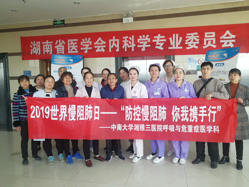 11月19日,在第18个世界慢阻肺日前夕,中南大学湘雅三医院呼吸内科党支部围绕今年的主题“防控慢阻肺、你我携手行”举办了2019世界慢阻肺日健康讲座及义诊活动。