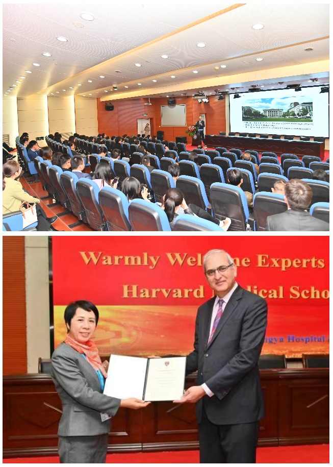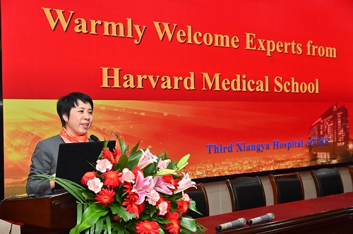 刘新春主任代表医院对三位专家的到来表示热烈欢迎:”在即将迎来中南大学湘雅三医院建院30周年之际,我们邀请到哈佛大学的专家们来院讲学,恰逢其时。哈佛医学院作为世界一流的医学院校,有其独特的办学理念和管理模式,希望大家抓住难得的与三位专家面对面沟通交流的机会,学习借鉴其成功的经验,提升业务水平“。随后,刘新春主任从“历史沿革”、“机构设置”、“临床特色”三方面向专家们介绍了医院情况。
